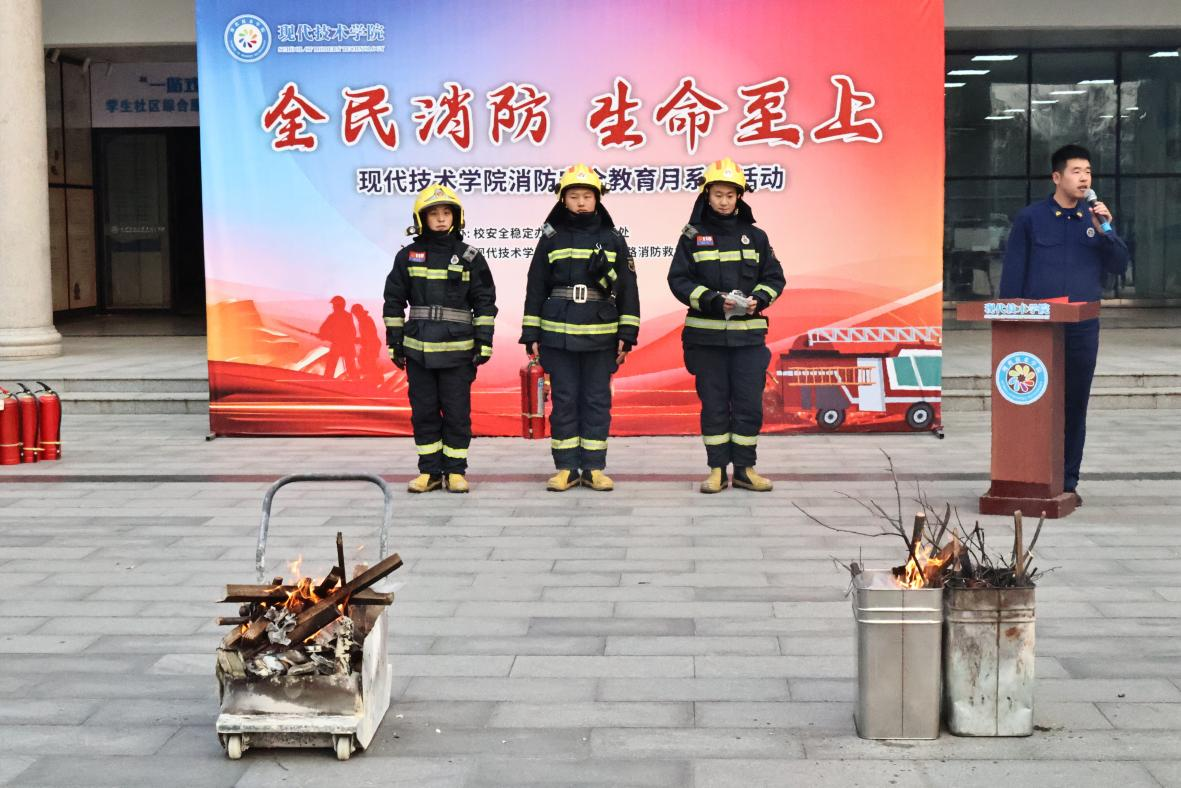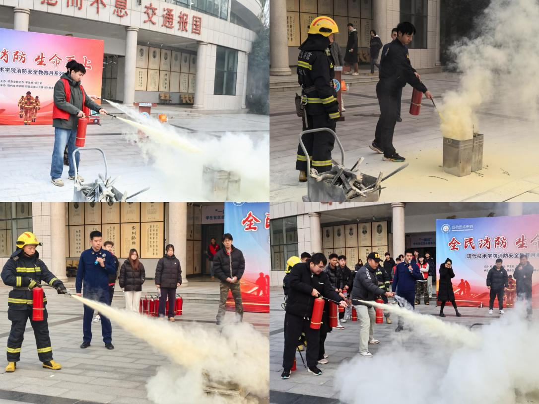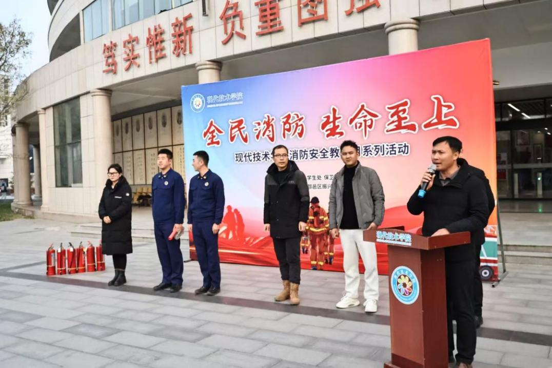 为进一步提升全院师生的消防安全意识和自防自救能力,夯实校园安全基础,12月11日,现代技术学院联合鄠邑区振兴北路消防站在学校图书馆西广场开展冬季校园消防安全演练活动,深入推动安全教育。