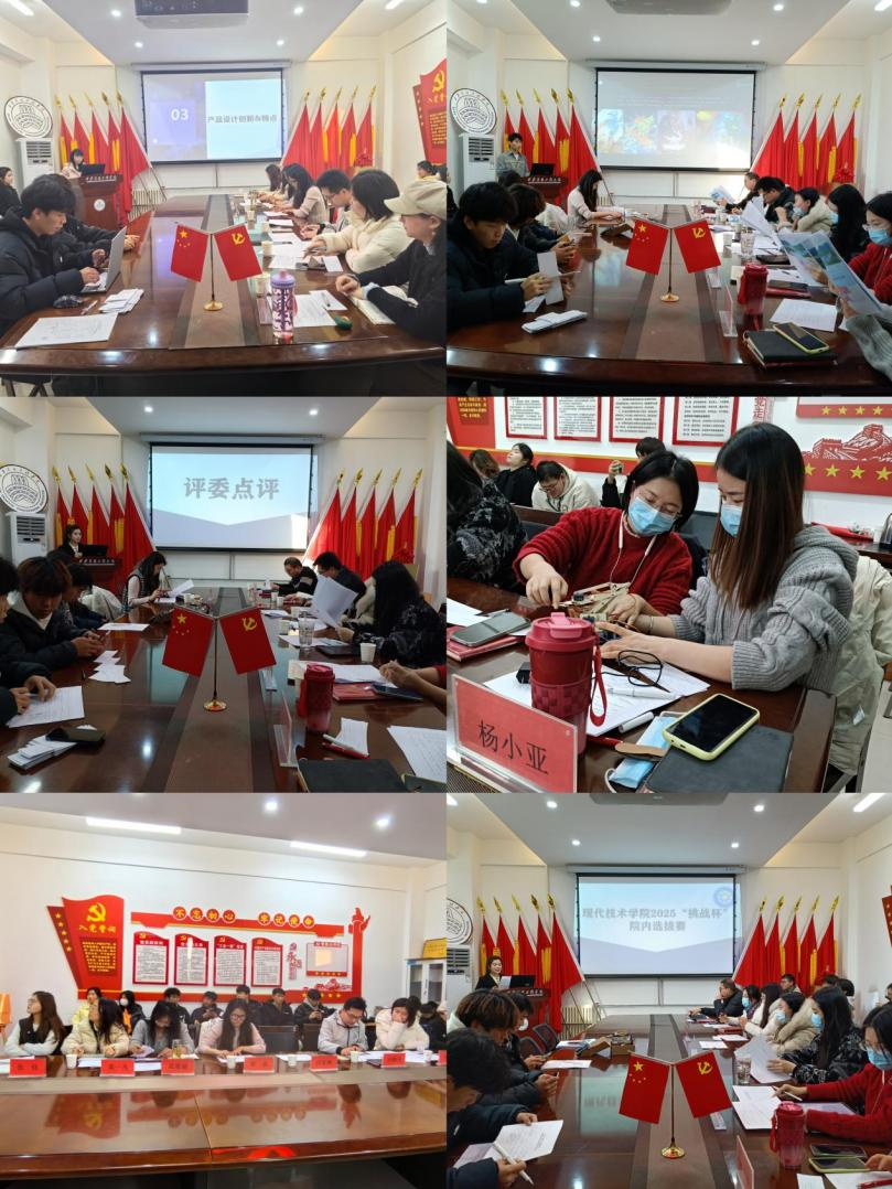 根据校团委《关于举办ky开元集团官网 2025 年“挑战杯”大学生课外学术科技作品竞赛的预通知》要求,12月24日、25日,现代技术学院2025年“挑战杯”院内选拔赛顺利举行,旨在培养广大青年学生创新精神和实践能力,推进第二课堂与第一课堂同向同行、深度融合。学院党委书记田宏顺、团总支书记黄晶、任课教师张钰、高雅丽、袁一凡、问晓宇、马悦、张乐妍、任晓霞、闫闻芮、戚盼、杨小亚、李佳伦、刘若梦担任评委。30个参赛团队骨干人员参加选拔赛。
