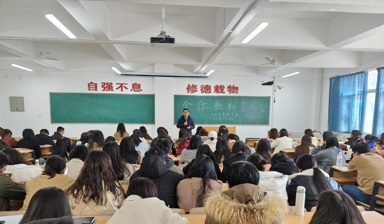 2月26日,人文与管理学院在2-201召开了全院教职工大会,全面部署新学期重点工作。