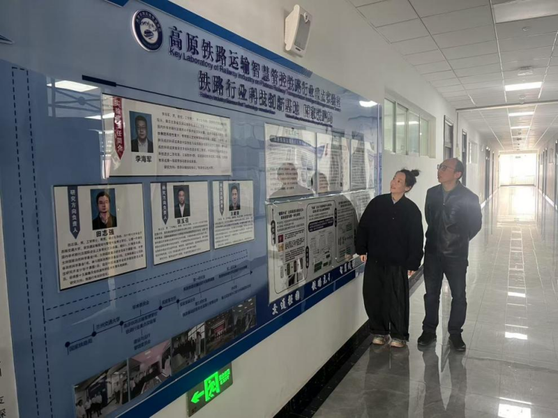 首先一行参观了国家级铁路行业科技创新基地,“高原铁路运输智慧管控铁路行业重点实验室”。兰州交通大学交通运输学院黄岩博士详细介绍了实验室的研究方向、科研团队、实验设备以及近年来取得的重大科研成果,同时就实验室在科研平台建设、人才培养、成果转化等方面的经验和做法进行了深入交流。