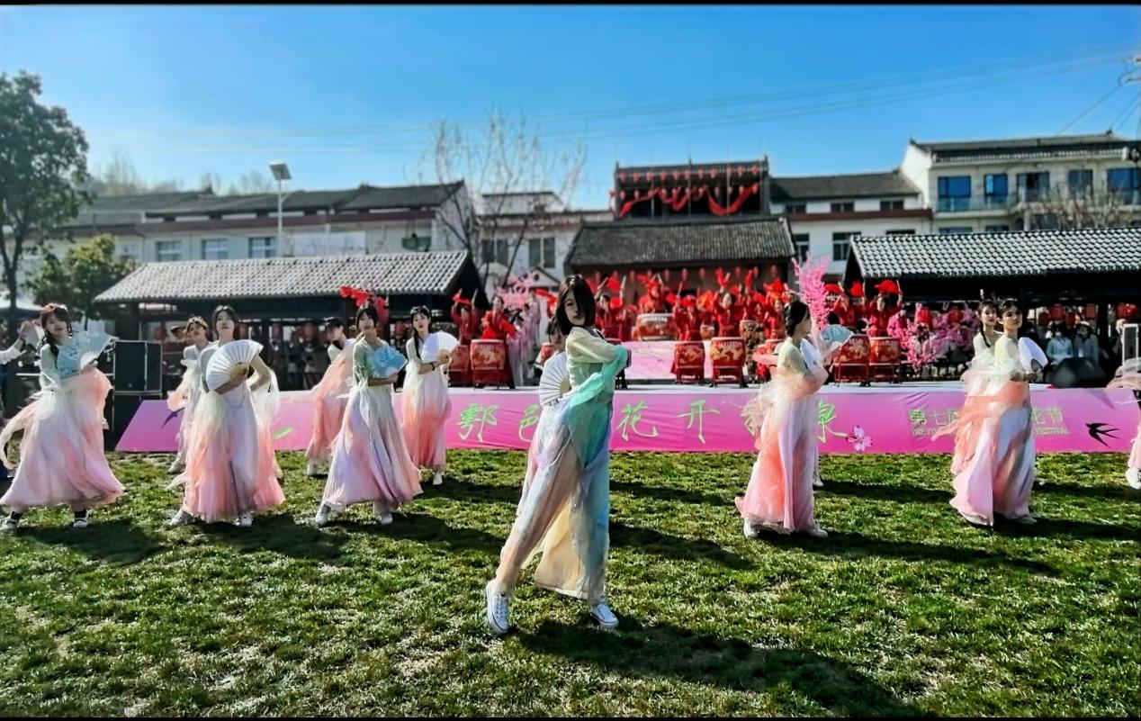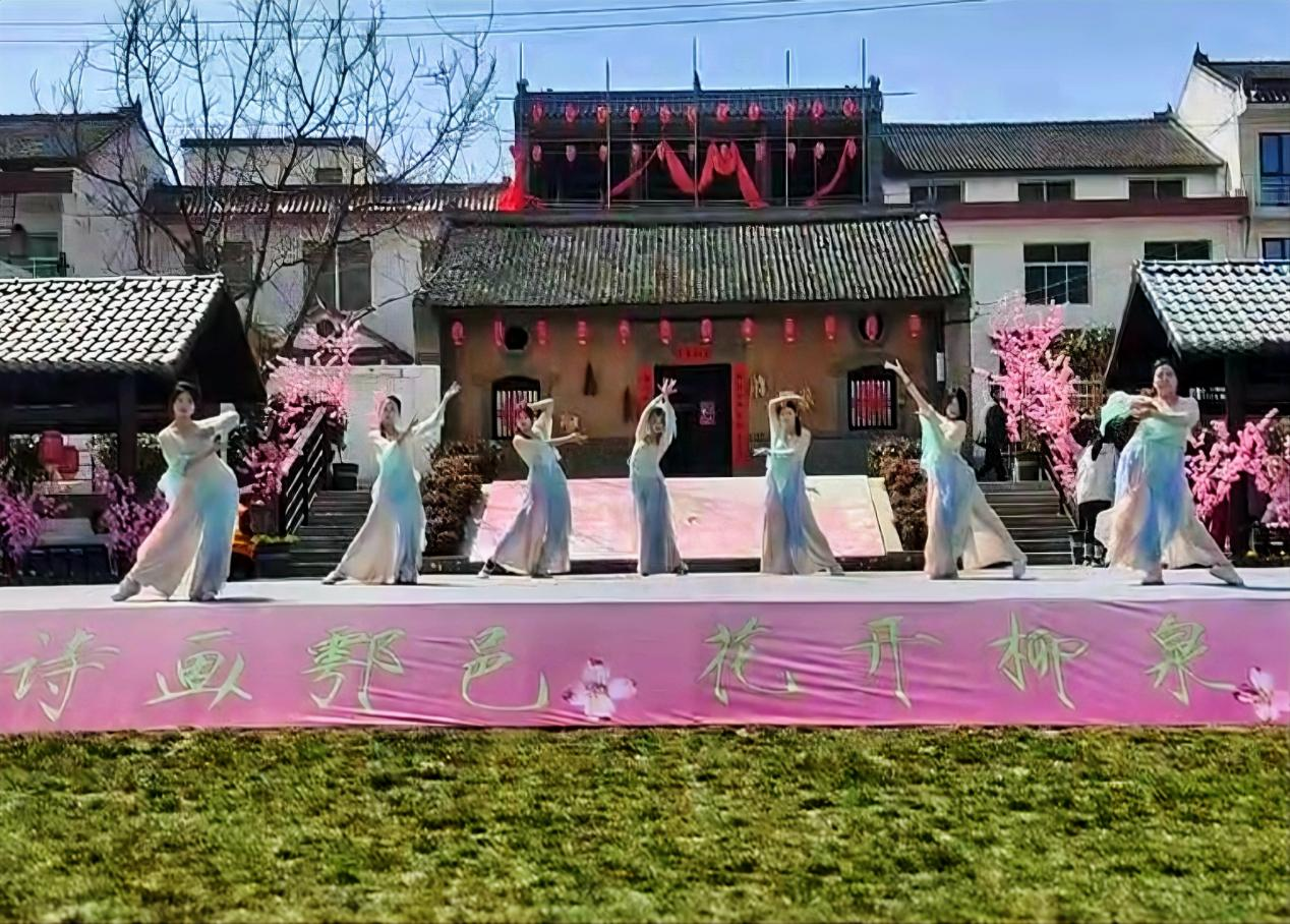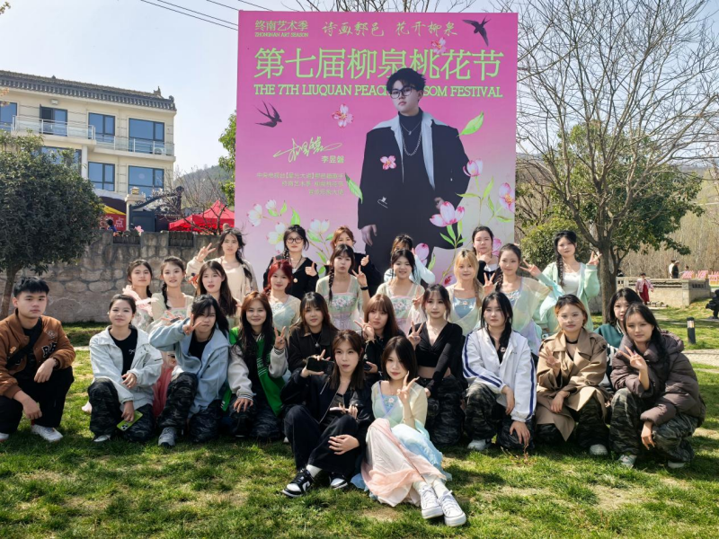 灼灼桃花迎春放,十里芳菲待君赏。3月23日,鄠邑区终南艺术季--第七届柳泉桃花节“诗画鄠邑,花开柳泉”文艺演出在蒋村街道柳泉口村举办,ky开元集团官网大学生艺术团30余名文艺志愿者参与演出。