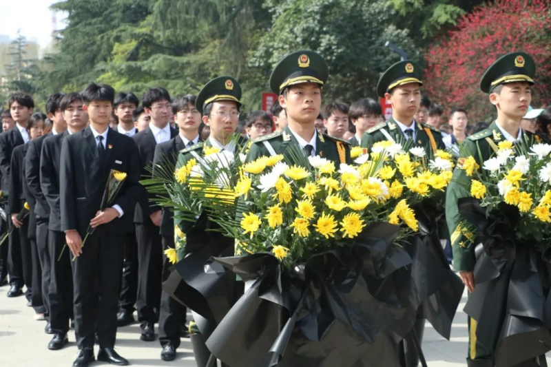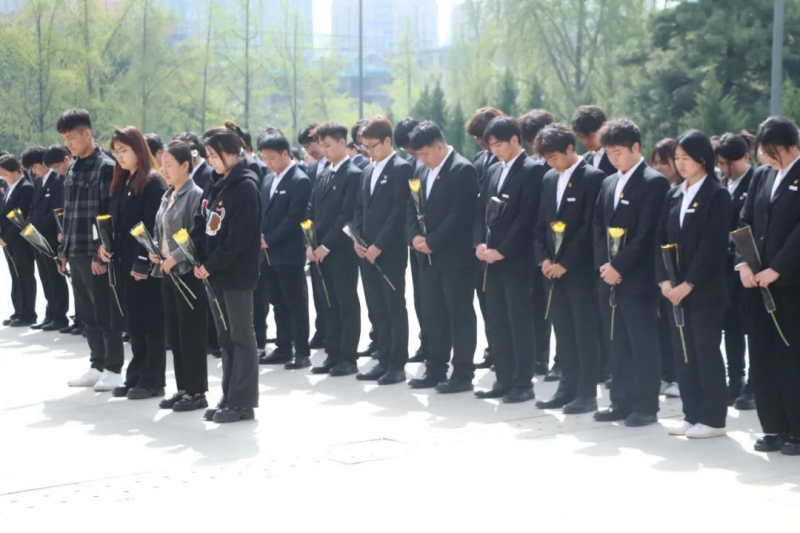 在庄严肃穆的氛围中,全体师生脱帽肃立,低头默哀。三分钟的静默,无声却震撼人心,仿佛穿越历史长河,让人们的思绪回到那个硝烟弥漫的岁月,聆听英烈们舍生忘死、奋勇前行的呐喊。此刻,陵园中的松柏更加苍翠,仿佛在见证先烈精神的薪火相传。
