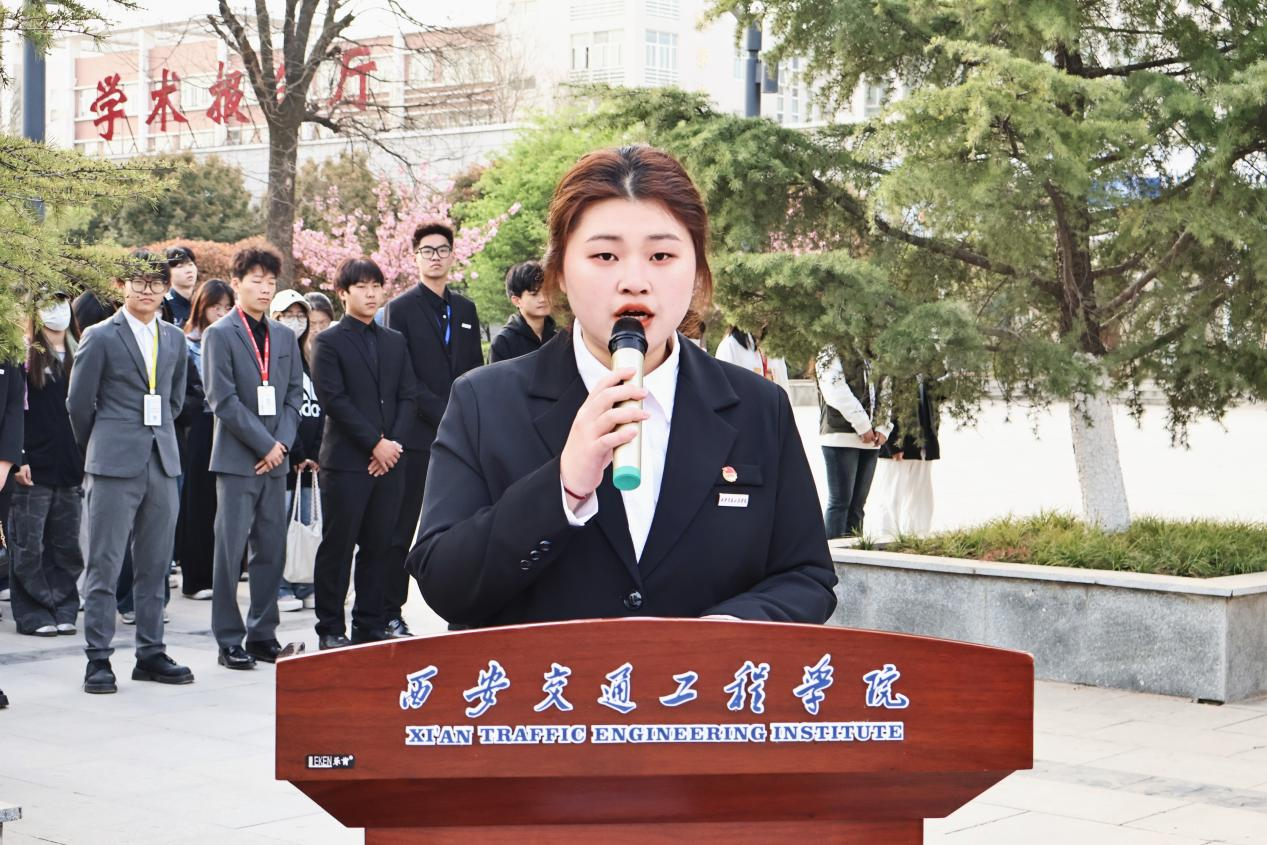 升旗仪式正式开始,现场奏响国歌,全体师生肃立,向鲜艳的五星红旗行注目礼。五星红旗迎风招展,师生们心潮澎湃,爱国之情在心中激荡。运管2304班罗悦僮同学作题为《青春当有为,勤学正当时》的国旗下演讲。她结合周恩来总理“为中华之崛起而读书”的事迹,阐述了青年担当的重要性;针对当前知识技术快速发展的时代背景,提出要主动学习、摒弃不良习惯,并分享了制定学习计划、合理利用时间等践行“勤学”的具体方法,激励同学们以勤奋书写青春,为祖国繁荣贡献力量。