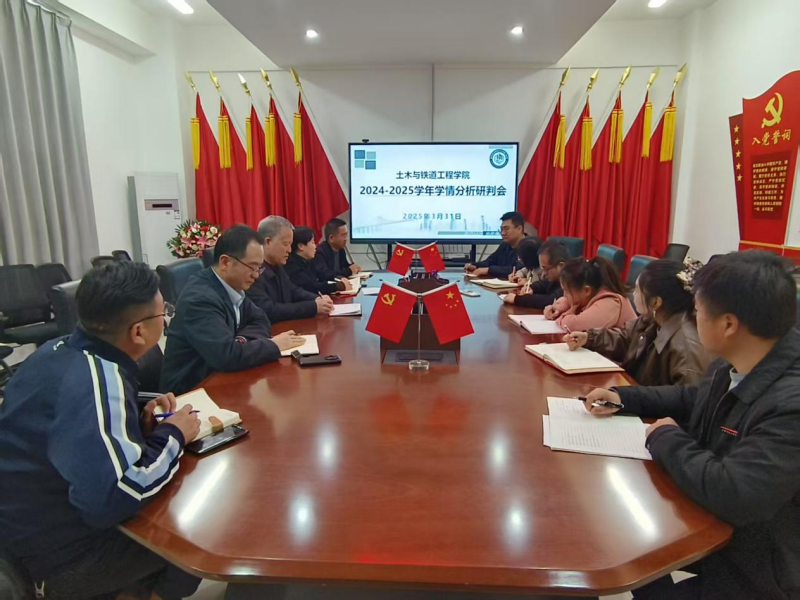 为精准掌握学生学业动态,持续深化学风建设内涵,3月31日下午,土木与铁道工程学院在崇文楼3-212会议室召开了2024-2025学年第一学期学情分析研判会。学院领导班子、教研室主任、教学秘书、学工组长参加了会议。