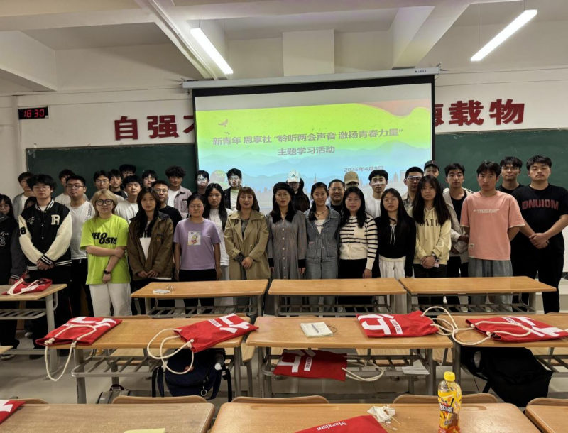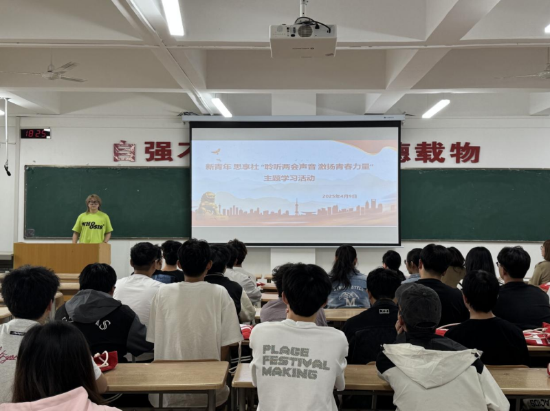 2025年3月4日至3月11日,中华人民共和国第十四届全国人民代表大会第三次会议和中国人民政治协商会议第十四届全国委员会第三次会议于北京人民大会堂召开。为深入学习贯彻“两会”精神,引导广大青年关注国家大事,增强青年的责任感与使命感,4月9日,马克思主义学院在教学楼2-102教室组织“新青年 思享社”同学开展“聆听两会声音 激扬青春力量”理论学习活动。马克思主义学院社团指导教师李娜、何梦霄及“新青年 思享社”全体同学参加了本次活动。