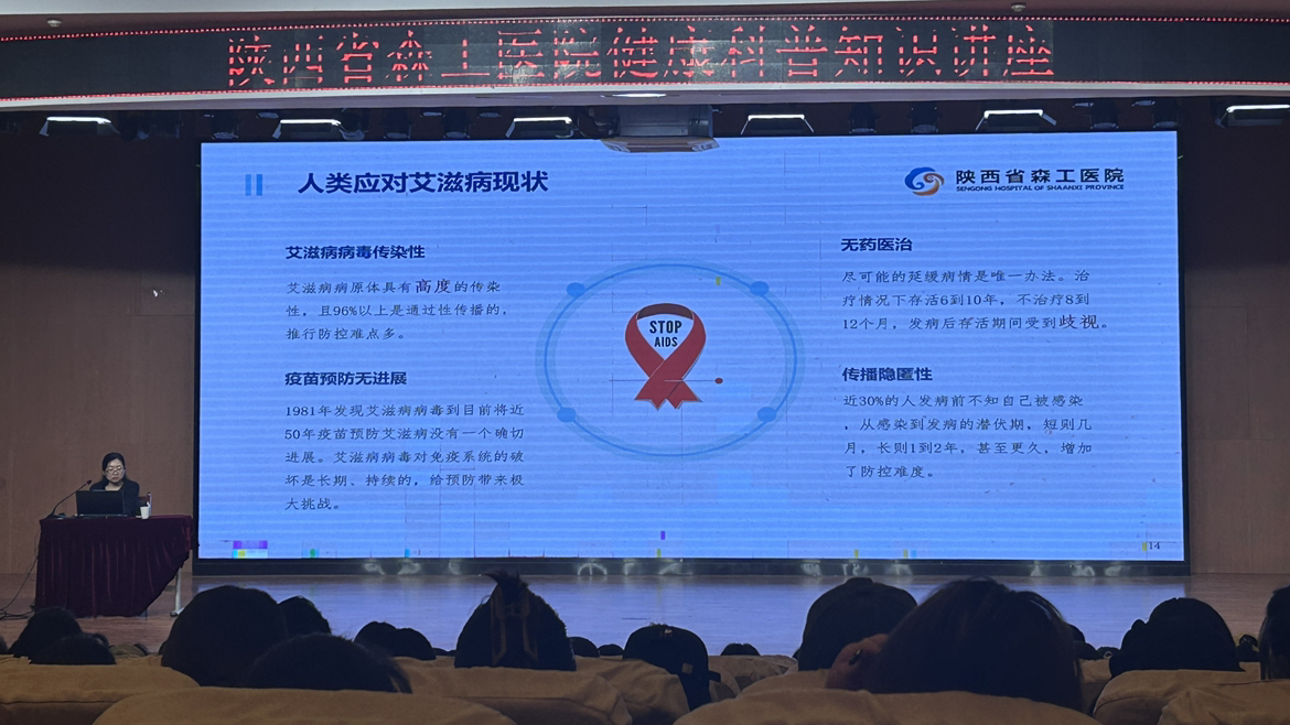 疾病预防控制科的汪远珍以 “高危行为——带你走向不归路”为主题展开演讲,重点聚焦于艾滋病和梅毒的普及教育。在艾滋病方面,汪远珍专家介绍了艾滋病的发病机理、漫长的潜伏期以及对免疫系统造成的毁灭性破坏。感染艾滋病后,患者身体将逐渐失去对各种疾病的抵抗力,最终可能因各种并发症而危及生命。同时,她也提及了艾滋病在社会层面带来的沉重负担,以及患者在生活、工作和社交中面临的巨大困境。谈及梅毒时,汪远珍专家强调了梅毒不仅会对皮肤、黏膜造成损伤,还可能侵犯心血管系统、神经系统等,导致主动脉瘤、脊髓痨等严重疾病。此外,汪远珍专家还特别强调母婴传播是梅毒的重要传播途径之一,感染梅毒的孕妇可能导致胎儿流产、早产、死胎或先天性梅毒儿,给家庭带来难以承受的痛苦。