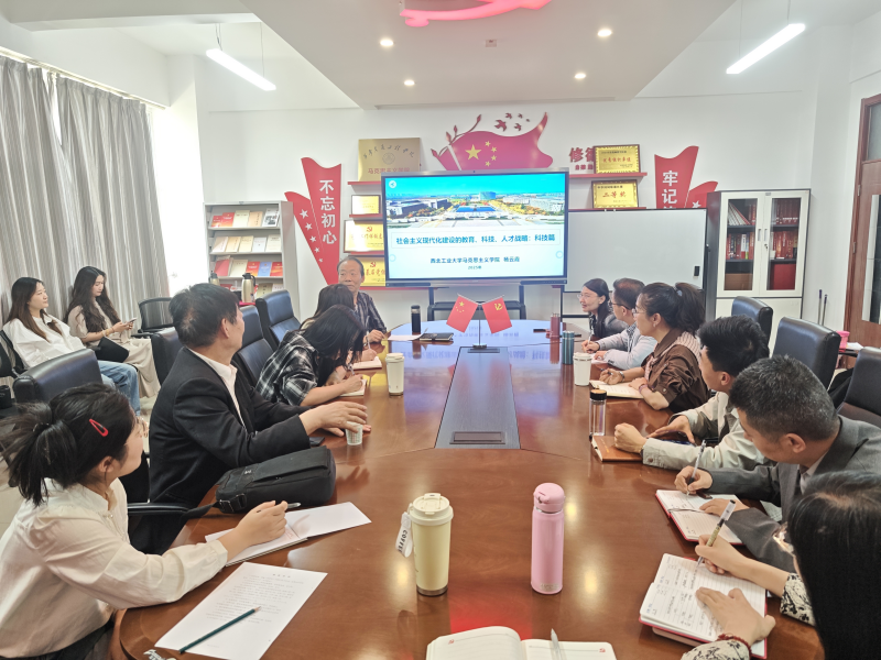 为提升教师理论水平,深刻领悟《习近平新时代中国特色社会主义思想概论》教材内容,4月16日下午,马克思主义学院在校务楼416会议室召开“社会主义现代化建设的教育、科技、人才战略:科技篇 ”主题讲座。本次讲座特邀西北工业大学杨云霞教授,讲座由马克思主义学院院长段联合主持,学院全体教师聆听了报告。