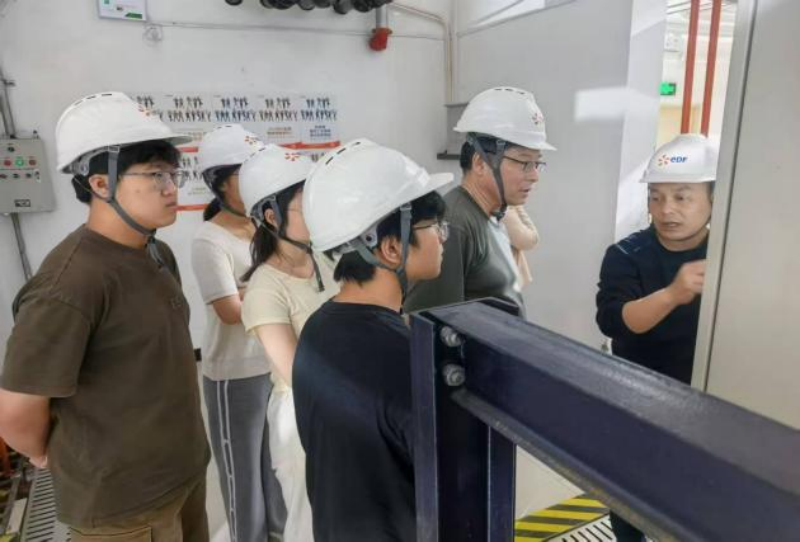 在“风光储”协同调度平台前,详细调研了如何运用数字化技术实现电力统筹调度,有效提升新能源消纳比例的原理与技术;在山顶的风电场上,详细了解了风叶转动发电产生风电的原理、流程与系统组成;在末端用能站重点调研了“热电联产+储能”模式。详细了解了通过余热回收技术,将发电过程中的废热转化为城市供暖能源,同时探索储能系统在调峰调频中的应用。企业技术总监王总最后强调了热电联产与储能的结合,既能提高能源利用效率,又能增强电网稳定性,是未来能源转型的重要方向。