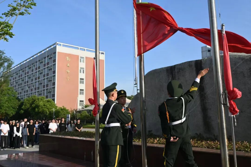 晨光熹微中,英姿飒爽的国旗护卫队队员们迈着整齐坚定的步伐,护送国旗走向升旗台。当激昂的《义勇军进行曲》奏响,五星红旗冉冉升起,全体师生肃穆而立,向国旗行注目礼,眼神中满是崇敬与自豪,嘹亮的国歌声在广场上空久久回荡。