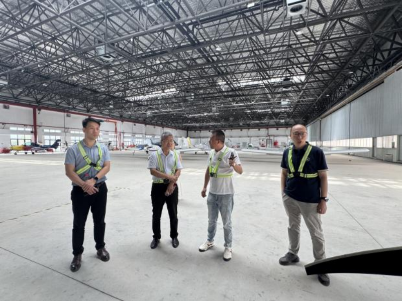座谈会后,崔院长一行前往旻鼎航空基地参观,实地调研了旻鼎航空低空经济布局、飞机状况,体验了飞机操作等,对旻鼎航空的产业发展现状和未来规划有了更直观的了解。