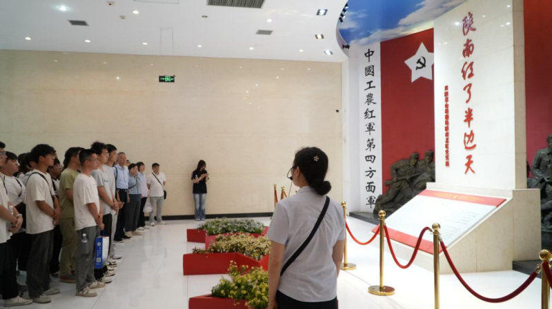 追忆峥嵘岁月,筑牢信仰之基。活动首站来到汉中市南郑区的川陕革命根据地纪念馆,川陕革命根据地纪念馆作为全国爱国主义教育示范基地、陕西省爱国主义教育基地和陕西省党史教育基地,由展陈馆、爱国主义教育广场、纪念碑、何挺颖烈士纪念广场组成,主展馆以“陕南红了半边天”为主题,分7个单元全面展示了川陕革命根据地陕南苏区的革命活动。馆内珍藏的1500多件珍贵文物,再现了川陕革命根据地的发展、陕南苏区人民英勇斗争和开辟红色交通线等重要革命历史事件。