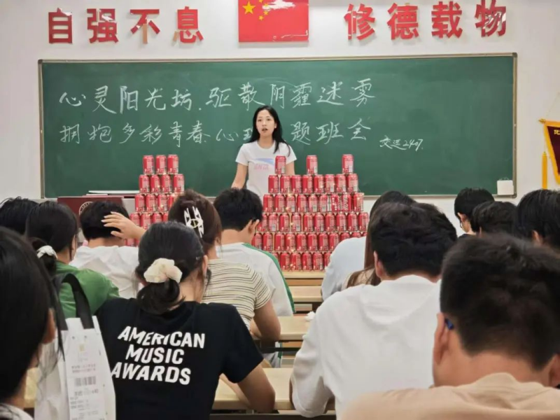 各班级聚焦“知识传递、能力提升、情感联结”三维目标,打造特色鲜明的心理育人课堂:情绪管理实践:2407班通过“情绪温度计”“盲眼信任行走”,引导学生科学识别情绪、建立同伴信任;压力释放创新:2405班以“气球脸谱”“音乐分享”传递心灵温度,2303班借“大风吹”“开火车”等团体游戏打破人际坚冰;自我认知深化:2302班设计“优势卡牌”“缺点转化表”,激发学生悦纳自我、挖掘潜能;班会覆盖压力应对、情绪沟通、团队协作等8类主题,融合情景剧、盲行挑战、树洞倾诉等20余种形式,实现心理健康教育“入眼入心”。