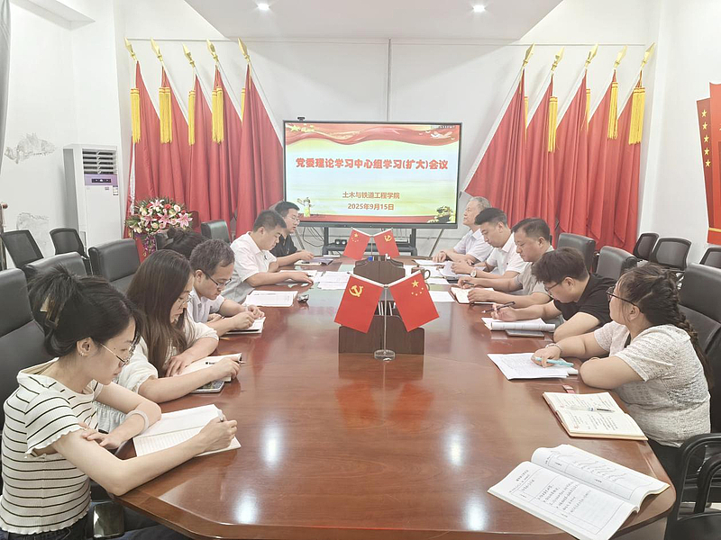 9月15日下午,土木与铁道工程学院召开2025年第5次党委理论学习中心组学习(扩大)会议。学院党员领导、党委委员、各支部委员参加会议。会议由学院党委组织员何成主持。