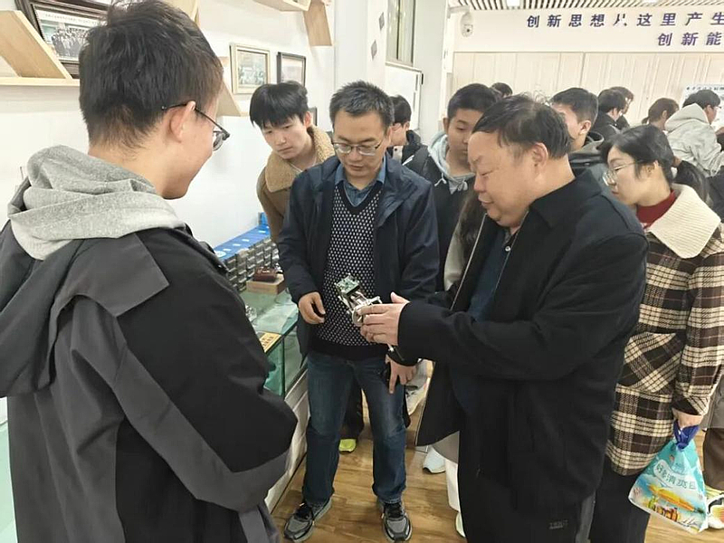 在王思明教授带领下,成员集中观看智能避障救援车训练视频,直观感受复杂场景下的自主导航与精准避障;展区中,从学科竞赛获奖作品到孵化落地项目,充分展现“理论—实践—转化”的完整链条,成员们对创新创业的流程和价值形成更清晰认知。