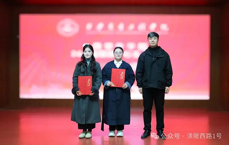 李旭龙为2024届融媒体中心优秀学生干部颁奖;刘子建、向宏利分别为融媒体中心优秀学生社团干部、优秀新媒体运营团队干部代表颁奖。