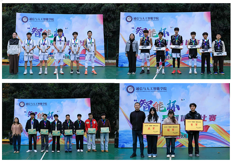 闭幕式由充满活力的啦啦操表演拉开序幕,学院团总支书记薛华老师首先进行赛事回顾,详细汇报了各项目比赛结果及获奖情况。一个个荣誉的背后,是选手们的刻苦训练与不懈坚持。随后进入颁奖环节,现场首先颁发优秀运动员奖,表彰在赛事中展现卓越竞技风采的个人;紧接着颁发优秀裁判员奖,以程稼斌为代表的7位裁判员尽职尽责,为比赛的公平公正保驾护航,这份荣誉实至名归;最后颁发集体项目奖项,其中篮球赛获得冠军的是通信工程2502班,获得亚军的是通信工程2501班和通信工程2503班,获得季军的是通信工程25z1班;趣味运动会则由通信工程专业摘得桂冠,大数据管理与应用专业荣获第二名,物联网工程专业获得第三名。与会领导依次为获奖个人与集体颁发荣誉奖项,现场掌声雷动,既是对获奖者的热烈祝贺,也是对所有参赛者全力以赴的充分肯定。