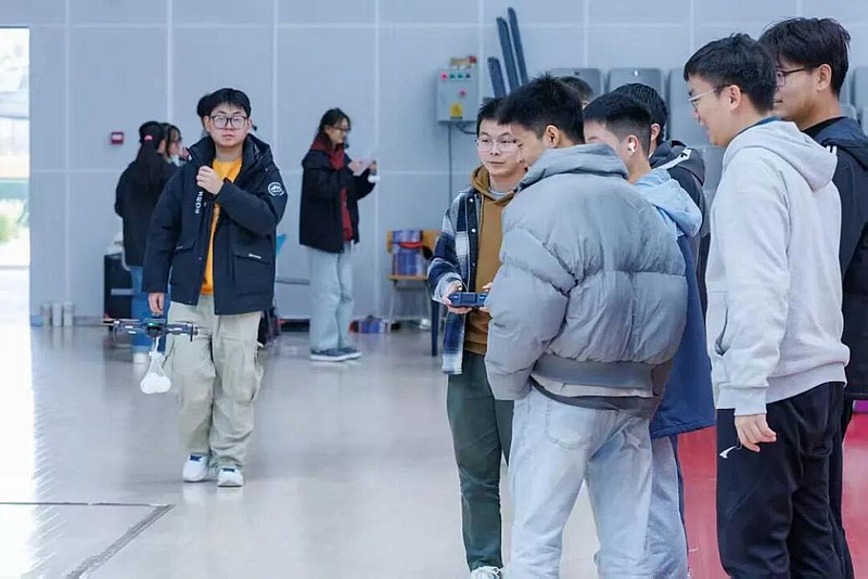 学生们研究无人机起飞