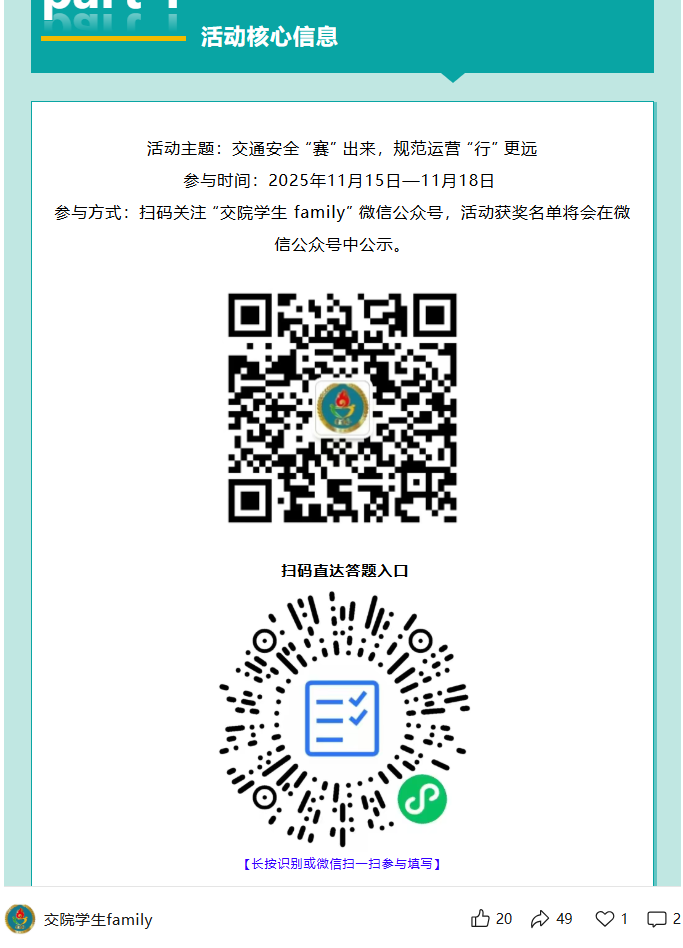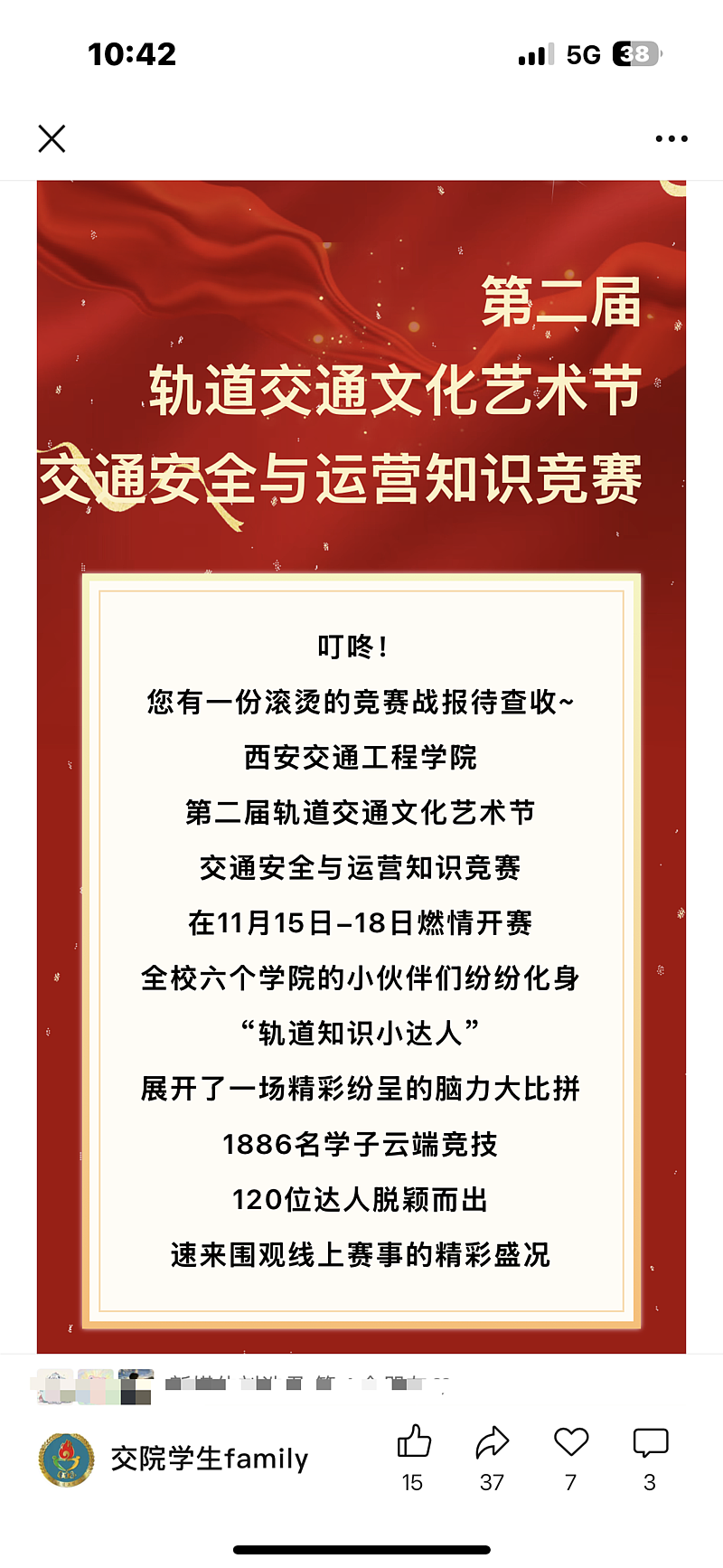 近日,第二届轨道交通文化艺术节交通安全与运营知识竞赛顺利落下帷幕。在11月15日至18日为期四天的赛程中,全校六个学院的1886名学子通过线上平台展开激烈角逐,最终120名参赛选手凭借扎实的专业知识和出色的临场表现脱颖而出。