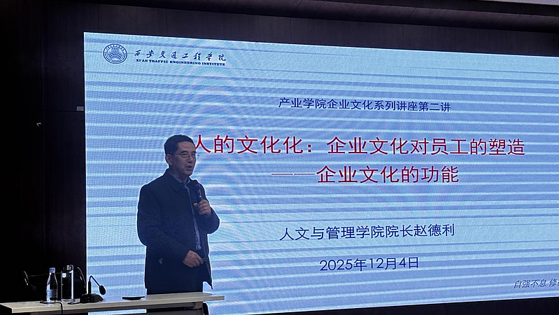 12月4日,人文与管理学院院长赵德利在集贤楼二楼报告厅为用友|新道数智商科产业学院财务管理专业2025级240余名学生作了题为《人的文化化:企业文化对员工的塑造》的专题讲座。旨在引导学生深入理解文化的内涵、企业文化的作用及其对个人职业发展的深远影响。