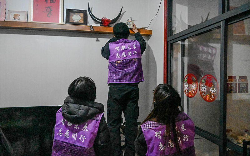 服务队的志愿者们走进社区老人家中,除了提供智慧设备帮扶外,还主动帮忙擦拭家具,让志愿服务从 “技术助老” 延伸到 “生活暖心”,让关怀落在日常的每个细节里。志愿服务队完成入户帮扶后,志愿者与社区老人在巷口亲切交谈。从手机基础操作的使用反馈,到网络设备的日常维护建议,志愿者细致询问老人的实际需求,耐心记下后续服务的优化方向,家常式的交流让志愿服务不仅止于“帮”,更延伸到“暖”,让智慧助老的温度在社区巷陌间持续传递。
