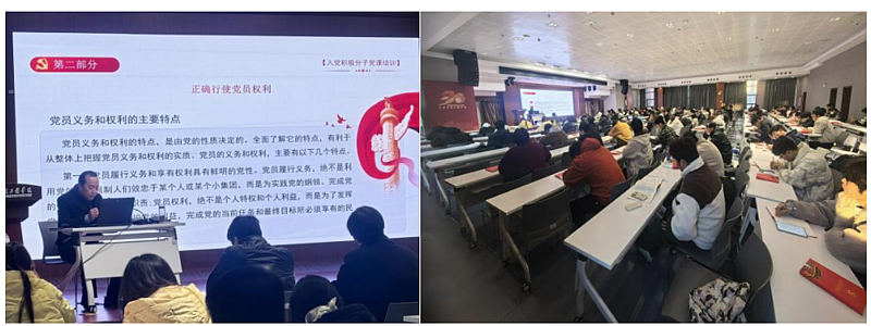 11月28日,学校党委委员、统战部部长杨浩成同志以“党员的条件、发展流程”为主题进行培训,授课围绕党章规定的党员基本条件、入党积极分子培养教育、发展对象考察、预备党员接收与转正等关键环节,系统梳理了党员发展的全流程规范与核心要求。他强调,入党不仅是身份的转变,更是责任的担当,希望学员们对照标准自我检视、主动提升,以严谨态度和务实行动走好入党每一步,为成为合格党员筑牢基础。
