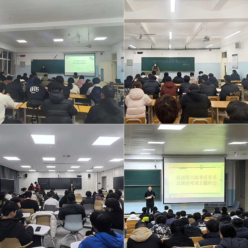 考试前期,土木与铁道工程学院辅导员组织召开英语四、六级考试动员主题班会。辅导员重点围绕即将到来的大学生英语四六级考试开展考前动员,帮助学生明确考试注意事项,强化诚信应考意识,为学生加油鼓劲。辅导员们详细宣读了考试关键注意事项:一是提前核对准考证信息,准备好必备物品,提前熟悉考场路线;二是严格遵守考场纪律,严禁携带手机、智能手表等通讯设备入场,避免因违纪影响考试成绩;三是规范答题流程,注意答题卡填涂规范、听力播放时间节点,合理分配答题时间。