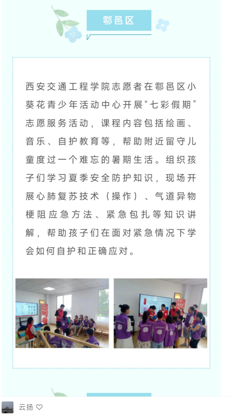 此外,劳动教育+志愿服务的“红马甲”,在小葵花青少年活动中心支教,美丽乡村建设、科学普及、暑假社会实践等多方面在行动。带动多项“挑战杯”、“大学生创新创业”项目,多名师生获得“优秀支教学生”“优秀支教指导老师”,“优秀科技志愿者”等荣誉。