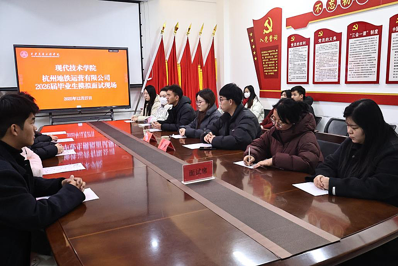 为精准对接就业市场需求,帮助毕业生锤炼求职面试实战能力,12月27日,现代技术学院顺利举办2026届毕业生模拟面试活动。就业指导中心教师宋攀、朱燕全程提供专业指导,活动由学院就业专员贺毅主持,报名杭州地铁运营有限公司的毕业生们以求职者身份沉浸式参与,在高度还原的职场场景中积累经验、提升技能。