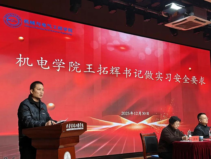 党委书记王拓辉则将重心放在实习安全层面。他结合工科实习的行业特点,对交通、生产、住宿等多方面安全规范提出具体要求,叮嘱学生牢固树立“安全第一”的意识,严格遵守操作流程,提升应急处置能力,以高度的责任担当守住实习安全底线。