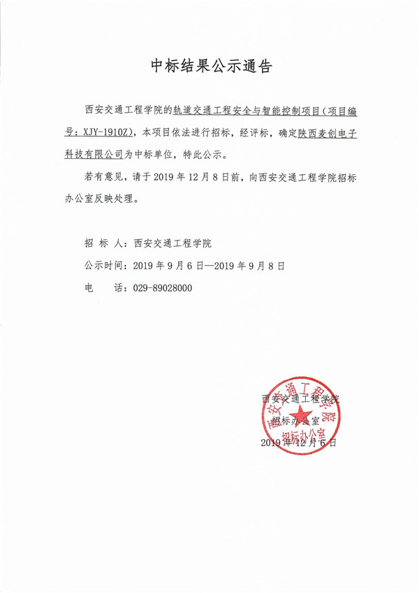 中标结果公示通告
