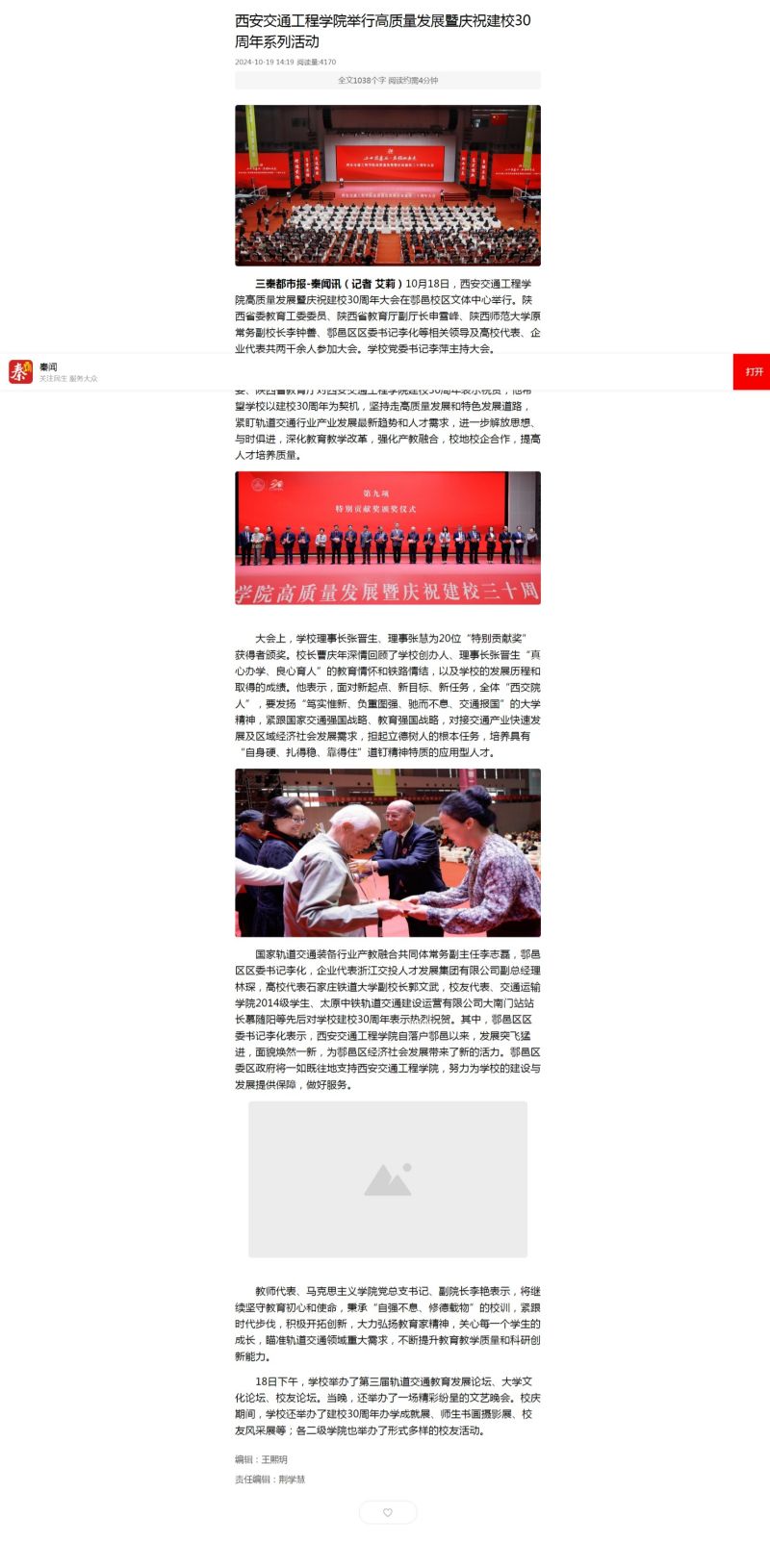 三秦都市报:ky开元集团官网举行高质量发展暨庆祝建校30周年系列活动