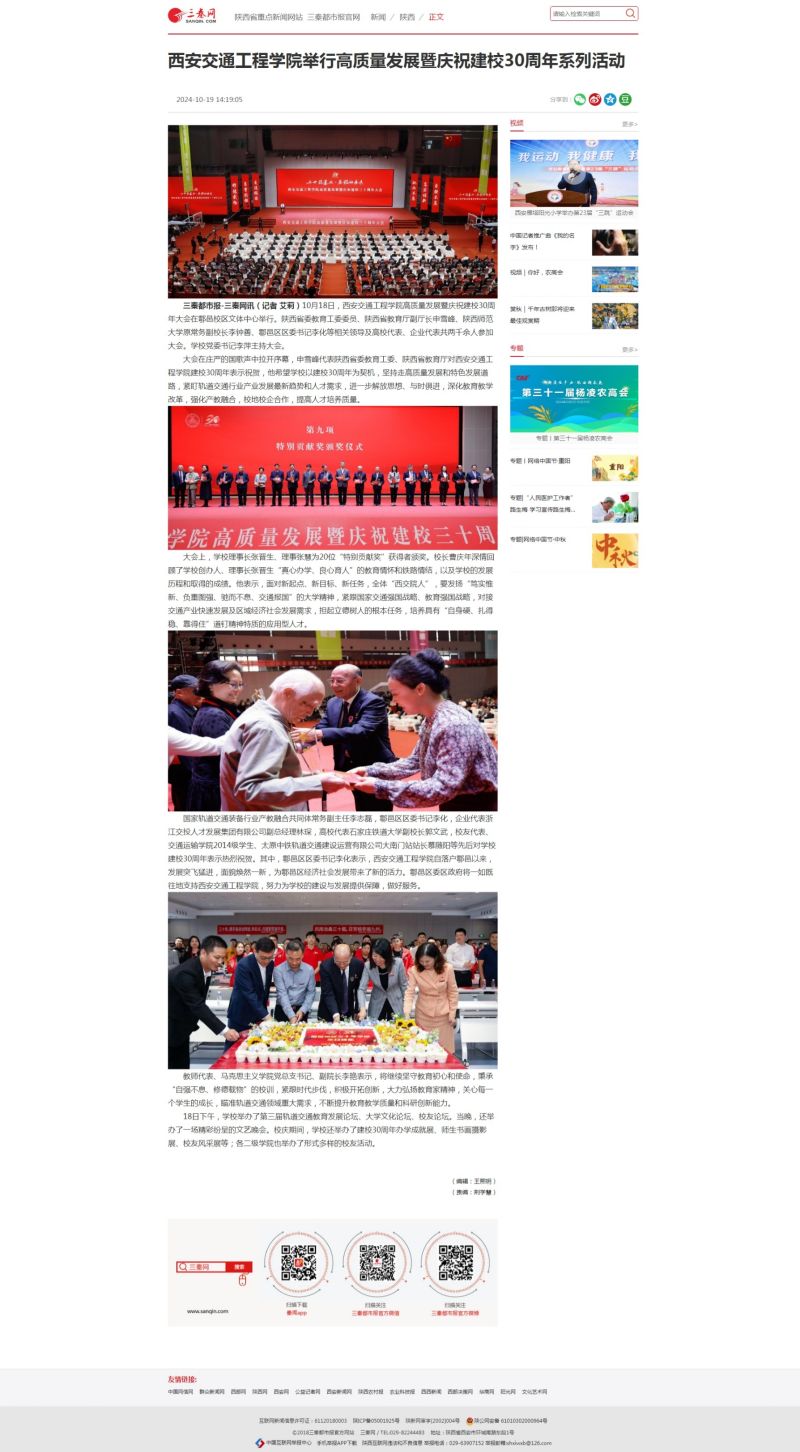 三秦网:ky开元集团官网举行高质量发展暨庆祝建校30周年系列活动