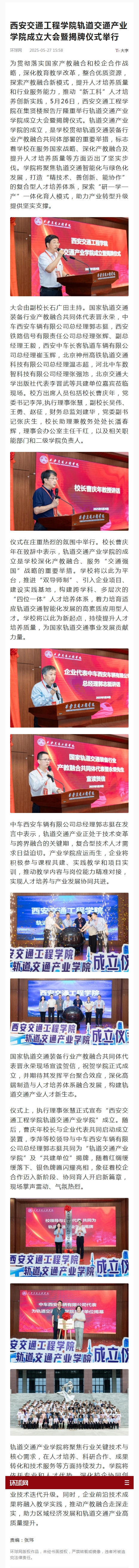 仪式在庄重热烈的氛围中举行。校长曹庆年在致辞中表示,轨道交通产业学院的成立是学校深化产教融合、服务“交通强国”战略的重要举措。学校将以此为平台,推进“双导师制”、引入企业项目、建设实践基地,构建跨学科、多层次的“四位一体”人才培养体系,着力培育适应轨道交通智能化发展的高素质应用型人才。学校将以此为新起点,持续提升人才培养质量,为国家轨道交通事业发展贡献力量。