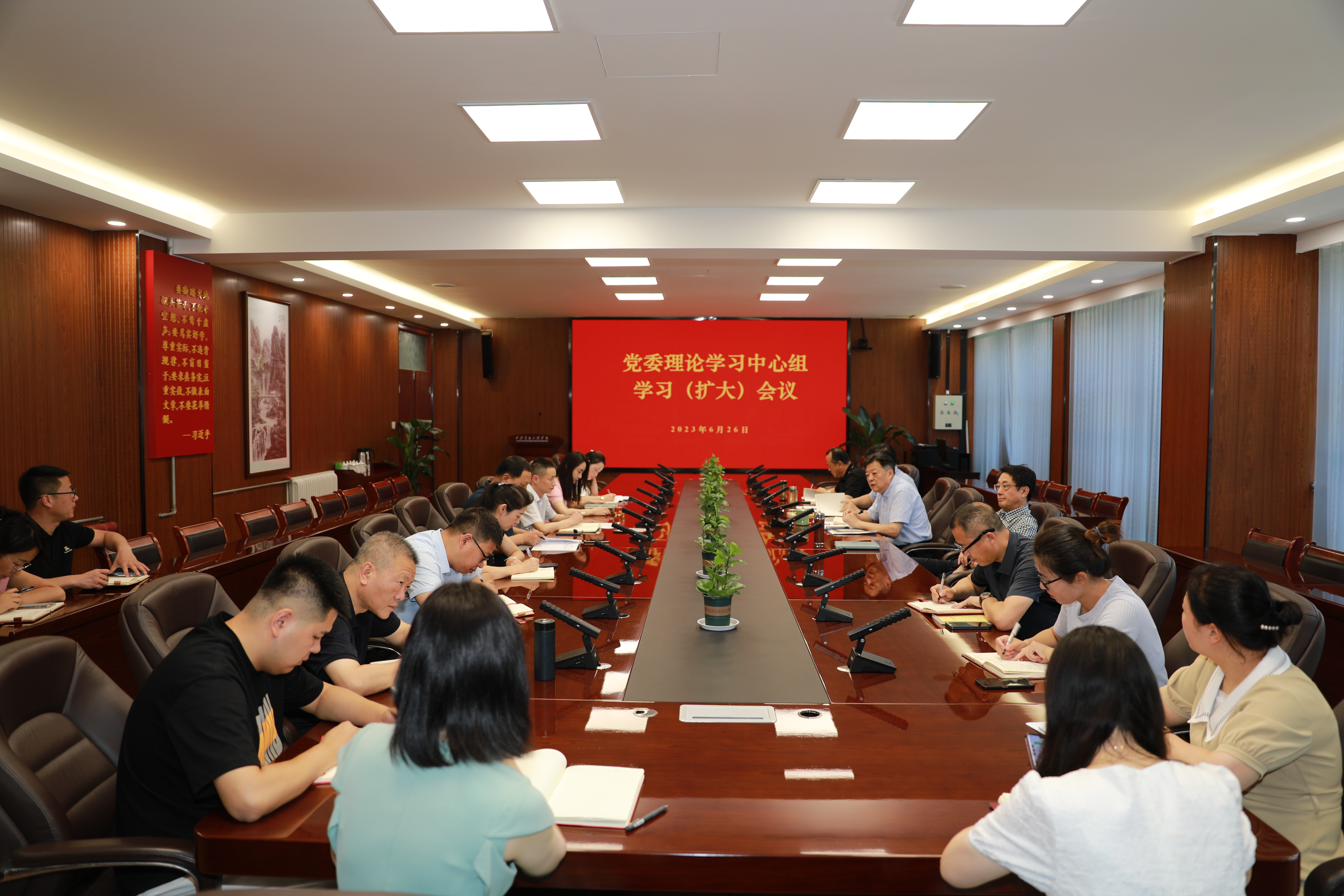 6月26日,ky开元集团官网召开了2023年第4次党委理论学习中心组集中学习(扩大)会议。全体校级领导、党委委员、党委各职能部门负责人、工会主席、团委书记、马克思主义学院院长、各二级党组织负责人参加了会议,党委书记马智勇主持会议。