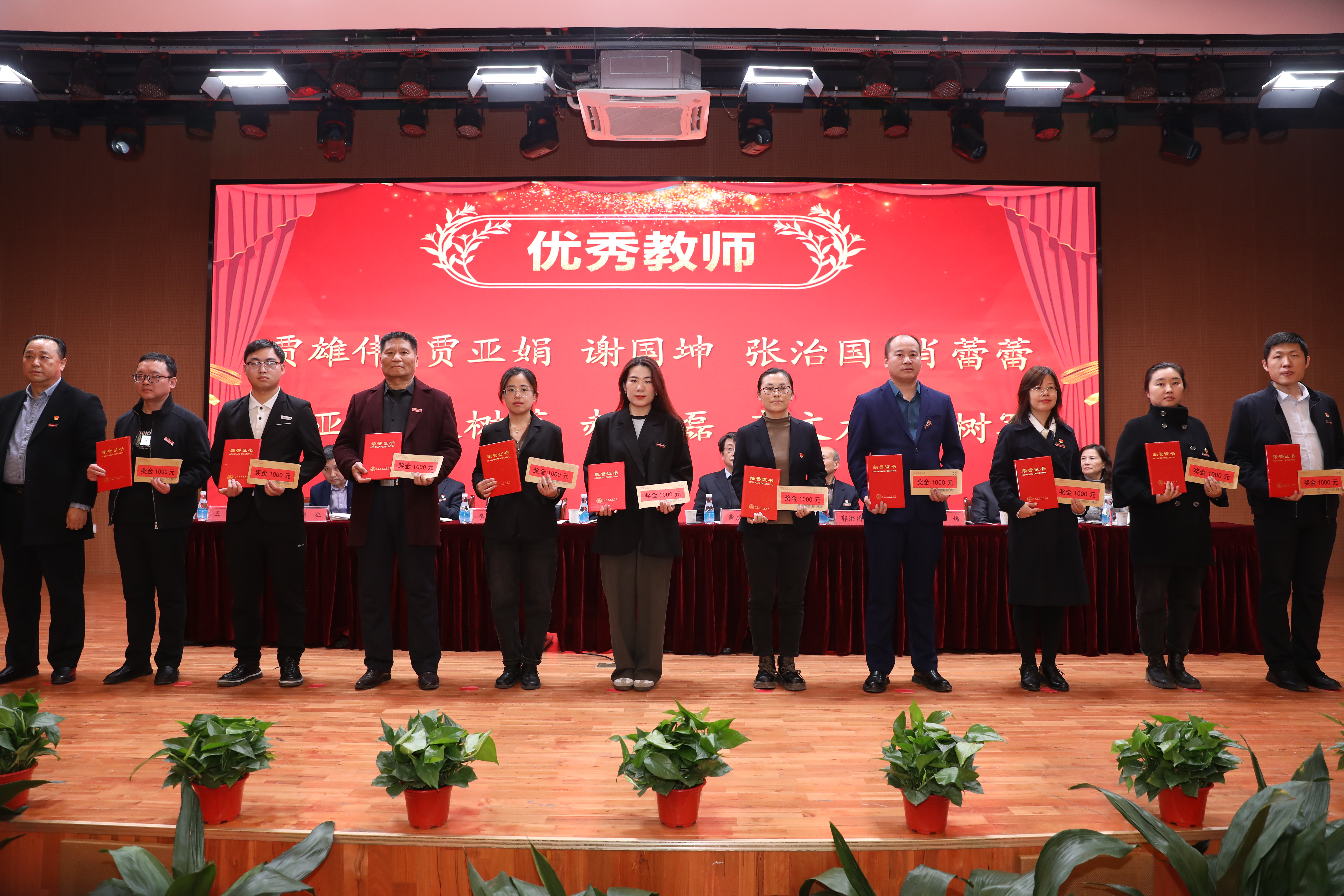 第二阶段会议由李萍书记主持,曹庆年校长宣读了《关于表彰2023年度先进单位 、优秀教师、优秀教育工作者、优秀处级干部的决定》,与会领导为获奖单位和个人颁奖;李萍书记分别与现代技术学院党委、公共课部党总支、机关党委签订了全面从严治党责任书;张晋生理事长分别与学生处、保卫处、人文与管理学院签订了安全稳定责任书。
